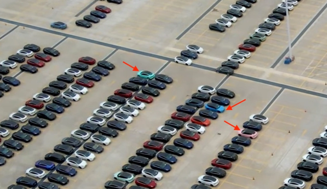 据报道,特斯拉上海超级工厂航拍,出现多彩配色汽车。