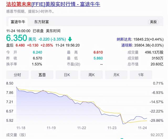 由于FF没有在规定期限内提交第三季度财报,被列为不符合规定的上市公司,极可能面临退市。受此消息影响,法拉第未来股价一度大跌逾10%,目前总市值较上市时已跌去一半。