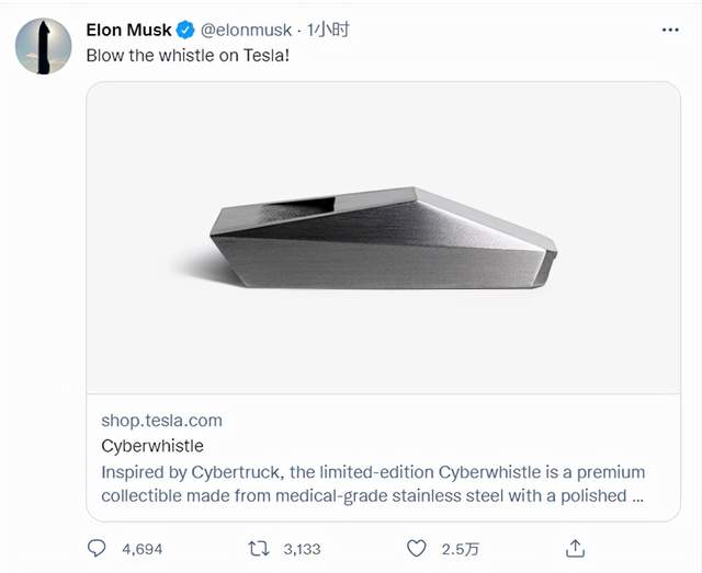 特斯拉卡车造型哨子售价50美元,马斯克嘲讽苹果清洁布
