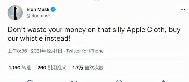 马斯克:“别给苹果抛光布交智商税,快来买特斯拉哨子吧!”