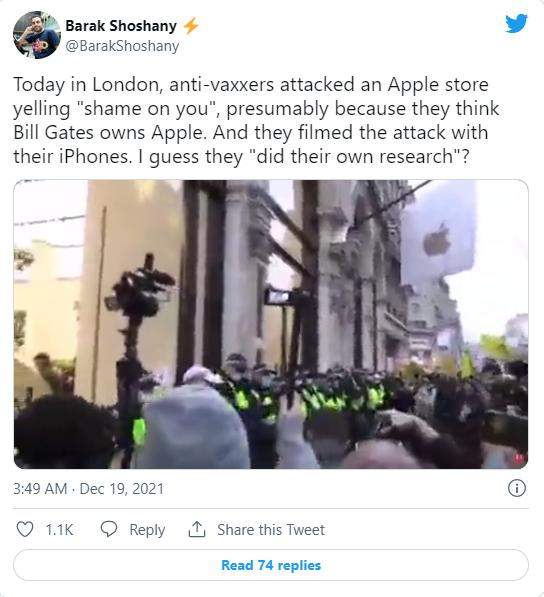 反对疫苗者抗议比尔盖茨,误砸苹果门店