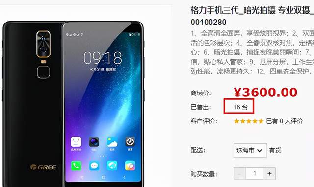 此前,因为没有价格及渠道优势,格力手机2代生产30万台仅卖出去1万台。格力手机3代上架官网首日只卖出去16台……