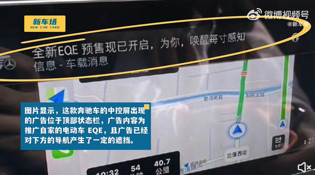有网友爆料称,收到了奔驰EQE的推广,且对导航产生了一定遮挡。