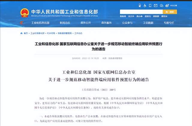 近日,两部门联合印发通告,进一步规范移动智能终端应用软件预置行为。